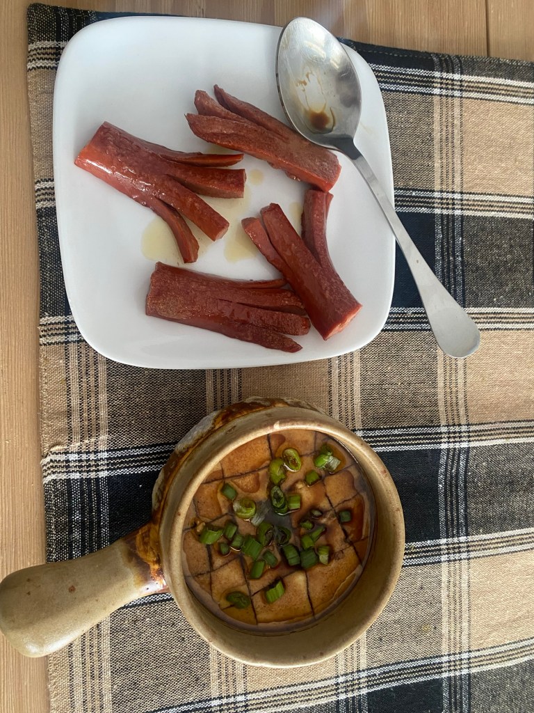 I saw a recipe on Pinterest and ran straight downstairs to start whipping them up. The recipe is simple: eggs, vinegar, water, soy sauce, sesame oil, and green onion.